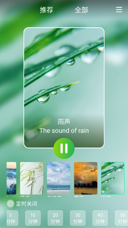 2、所有声音均取材于大自然,让您聆听最纯净的天然音效。