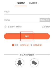 2、选择登录方式,输入手机号码并获取验证码后点击“确定”。