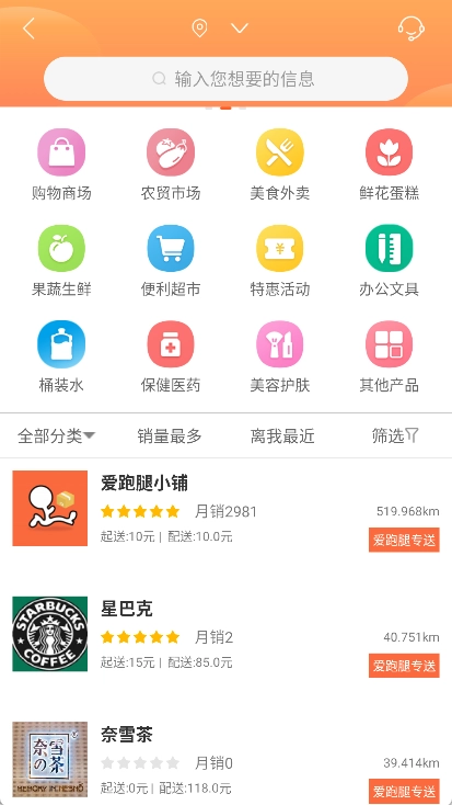 3、爱跑腿商城:主营美食外卖,兼有鲜花蛋糕等,线下商家备货后由跑腿服务送货上门。