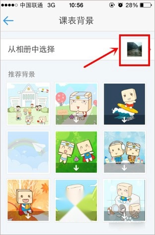 4、在课表背景页面可以看到当前使用的背景,系统提供了多种背景供选择,点击即可使用。