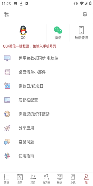 2、点击右下角我的这里可以查看各种功能,有桌面清单、倒数日、底部栏配置等等。