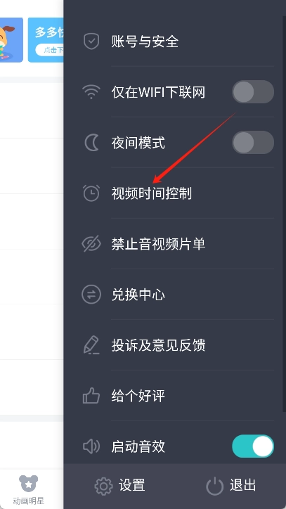 3、在设置菜单中找到并点击“视频时间控制”选项。