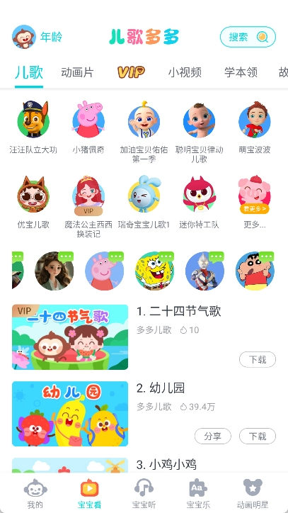 儿歌多多是一款专门为0到12岁儿童设计的手机早教应用,整合了大量儿歌、故事、动画片等高品质资源,多维度助力儿童的成长与发展。此外,儿歌多多的内容体系包含了丰富的故事资源库、有趣的互动游戏以及生动的动画绘本,覆盖国学启蒙、英语学习、智力开发等多样化领域。儿歌多多的最新版本力求让孩子们在快乐氛围中获取知识,成为众多家庭信赖的早教选择。