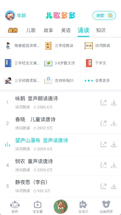 2. 拥有丰富的资源,可随时播放儿歌、故事等音频内容。