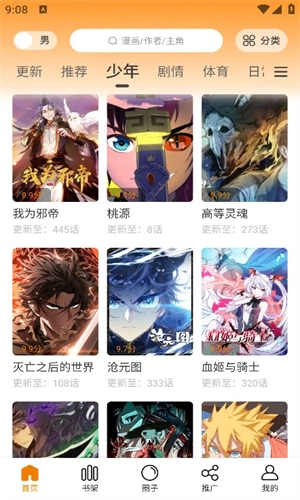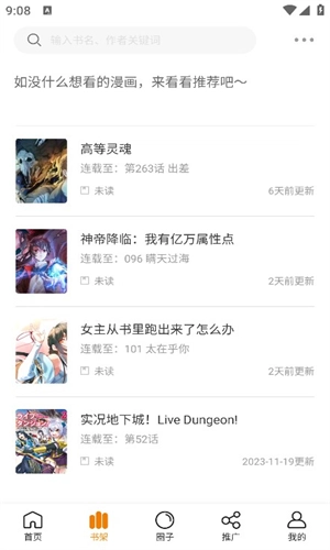 3、在主界面上既能看到各类漫画推荐,也可以搜索自己感兴趣的漫画。