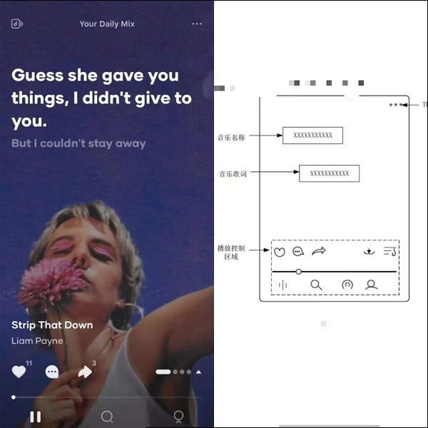6、的播放界面和Resso类似,界面上方是音乐名称、音乐歌词等,背景可以是静态和动态的视频。