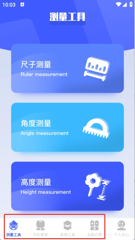 底部栏里整合了丰富的工具资源,测量工具、计算工具等各类工具一应俱全。