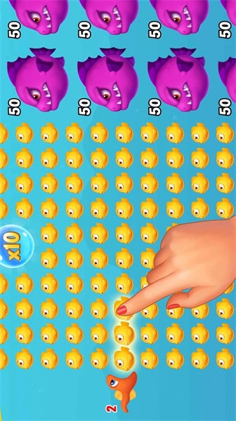 2、体验小鱼到大鱼的成长过程,挑战其他玩家,展现实力和技巧,成为海洋霸主。