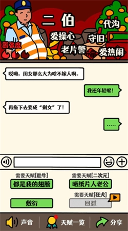 走亲戚大挑战是一款非常有趣的休闲益智游戏。在这里,你能够真实地体验到走亲戚的感觉,仿佛置身于真实的家庭聚会中。通过阅读对话内容,你可以做出不同的选择,回答亲戚们的各种问题,极具代入感。