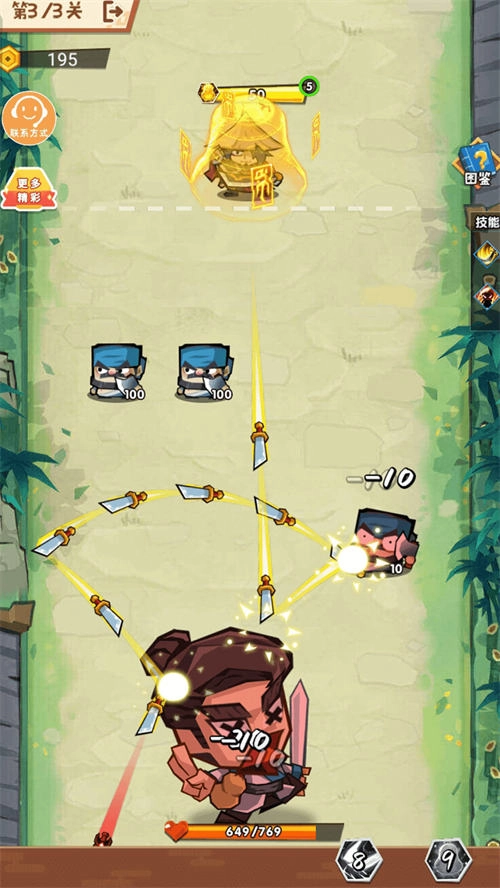 2、武器系统也是比较多,用不同的武器来发射弓箭吧,比较新颖有趣的;