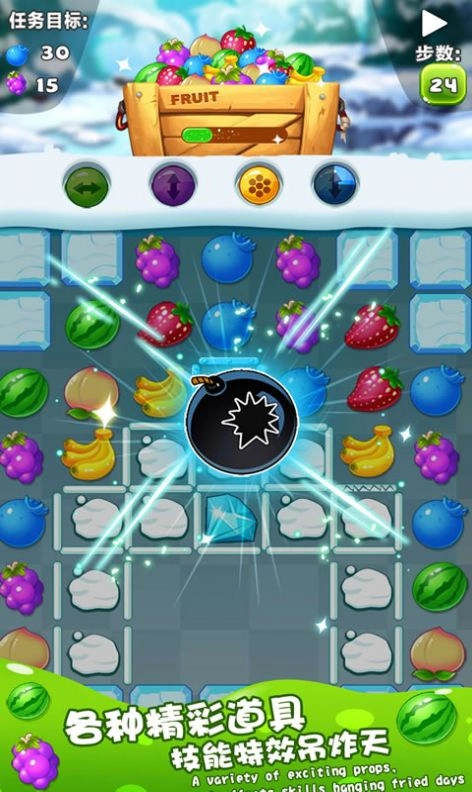 2、一次性消除多个水果就可以得到一个特殊的水果了,然后用好了就可以更好的获胜;