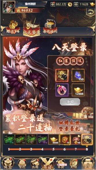 头8天的签到奖励务必全部领取,重要的事情说两遍,一定要记好!每天的奖励都极为丰厚,签到过程中能获得橙色武将、红色装备、元宝等各类优厚奖励,千万别忘记领取。