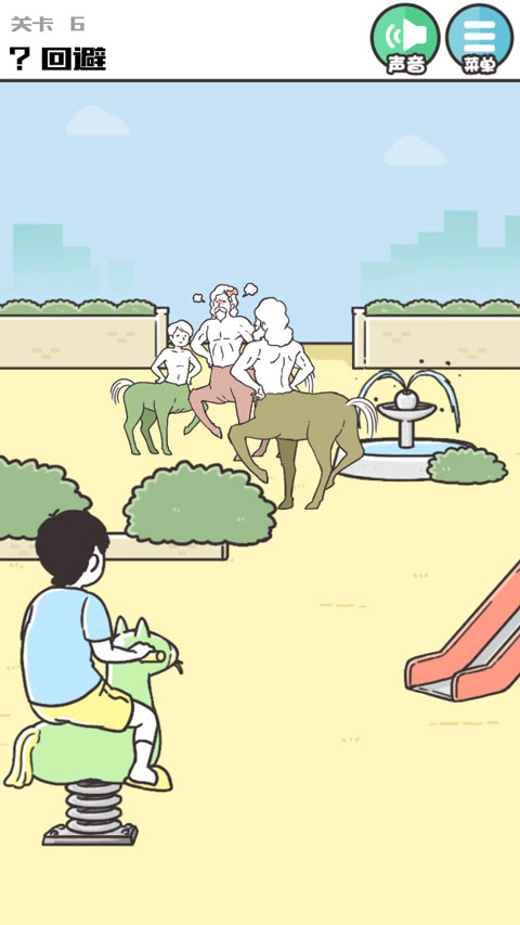 在坐着的弹簧木马嘴上获取第一朵花,于左上方的草垛处拿到第二朵花,点击喷泉,进而得到第三朵花。集齐花朵制成花环后,把花环放置在人马的头顶,此时会有一个草莓从滑梯滚落,将这个草莓放到人马的嘴上,接着点击正在颤抖的草垛。