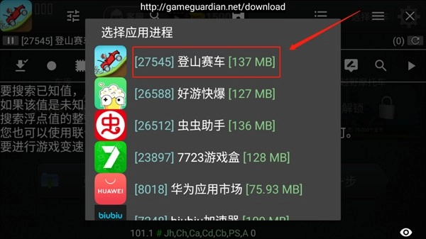 3、此刻可以看到GG专属的悬浮窗,接着我们运行登山赛车。