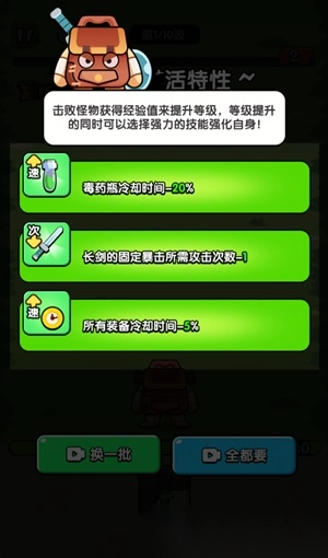 4. 击败怪物获得经验值来提升等级,等级提升,的同时可以选择强力的技能强化自身!