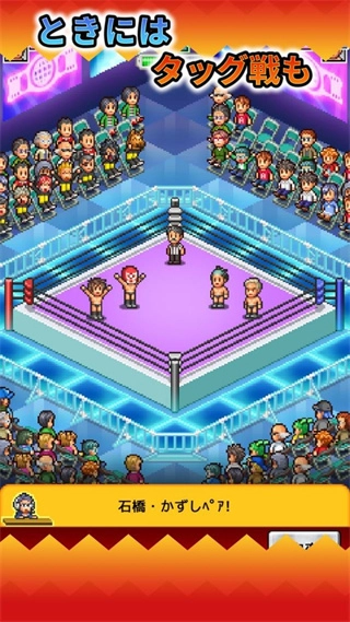 《摔跤擂台物语(Pro Wrestler Story)》是一款轻松的模拟经营游戏,游戏运用经典的像素风格画面。在游戏中,玩家能够经营一家摔跤馆,这就需要招募摔跤选手、举办赛事,以吸引观众前来观赛。每一位摔跤选手都具备不同的属性与能力,玩家可为他们量身定制有针对性的训练课程,持续提升他们的能力,从而打造出全国闻名的摔跤明星。