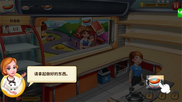 1. 客人到来后,会表明所需食物,玩家需即刻制作,例如煎香肠。