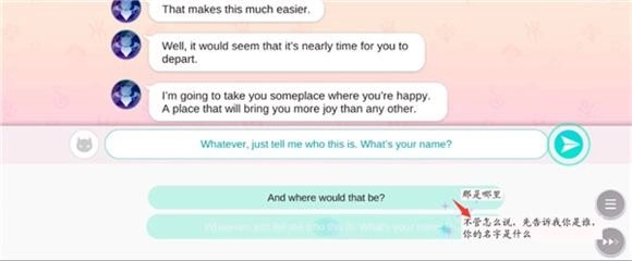 1. 进入剧情后,对方说“Hello你好”,我们回应“你是谁?”