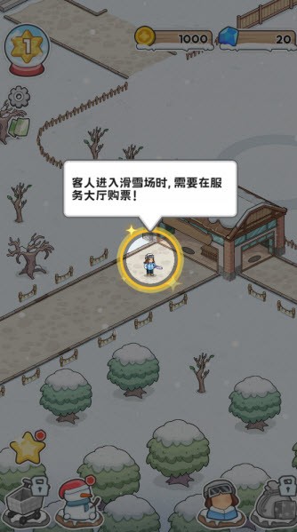 2、跟随新手引导建造滑雪场,准备迎接我们的第一位客人。