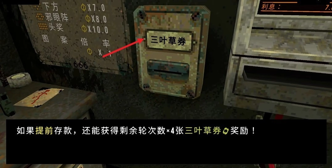 4、用三叶草券可以购买幸运符,提高生存几率!每当你在ATM足量存入所需硬币,商店将免费商品刷新!