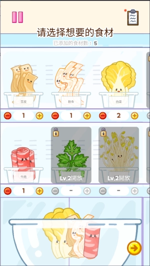 10、在等级提升之后,可以到左上角的商店当中购买更多食材,制作更加丰富的麻辣烫。
