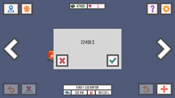 1、选择自己喜欢的货车,点击右下方+按钮进入购买界面,每辆车由于属性和外观都不相同,所以需要花费的金额也不相同;