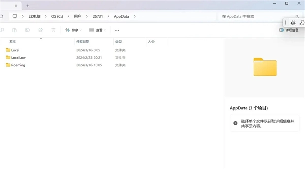 4.找到AppData(这是隐藏文件夹,需要开启显示隐藏文件夹才可以)进入其中的LocalLow