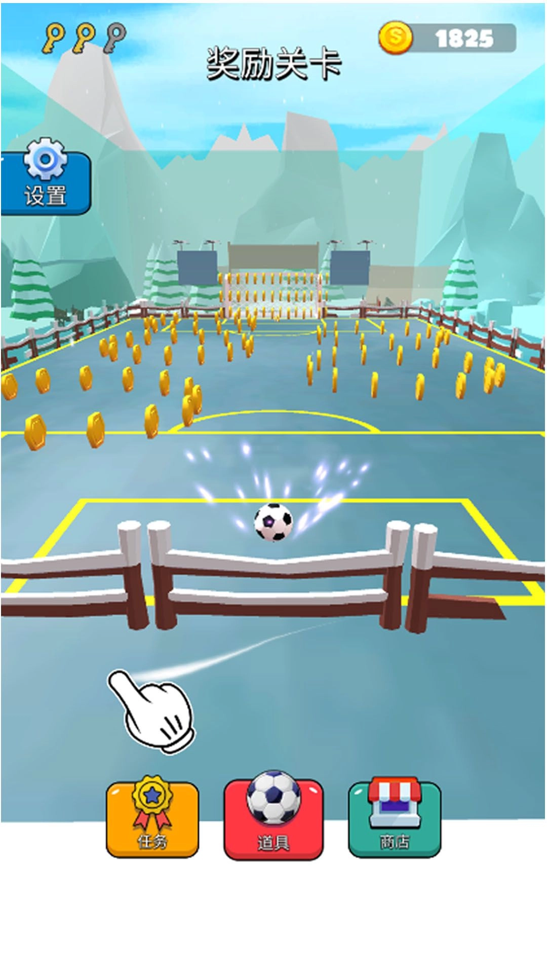 3、勇闯奖励关卡,大量收集金币,解锁神秘隐藏场景,一步步朝着足球明星的目标迈进。