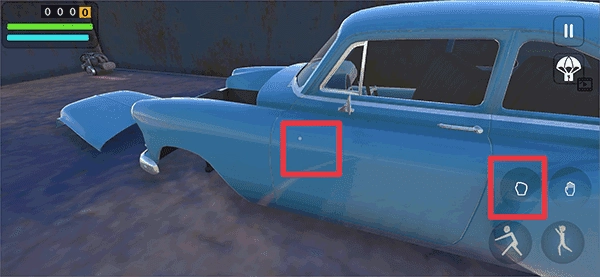 1. 在本站安装并点击打开游戏后,玩家需先把汽车上的所有零件装配到车上,点击手掌形状的按钮进行拾取。
