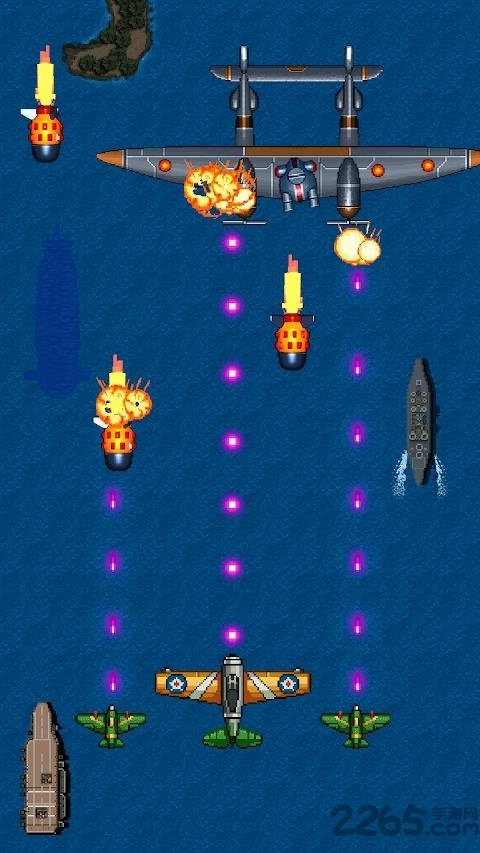 1、采用经典飞行射击玩法,玩家于空中与敌机进行激烈交锋,感受紧张刺激的战斗历程。
