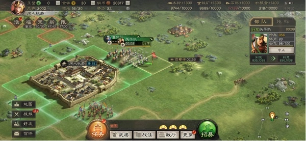 同时我们在攻占敌方阵地的时候,一定要注意,有的时候敌我军力相差不大,就会处于战平状态,而这个时候我们可以选择利用第二队去支援,成功占领之后,我们接着就可以让第一队回城修养,这样的话,我们就可以将兵力损耗降到最低。战斗中增兵,也是一个不错的战斗策略呢。