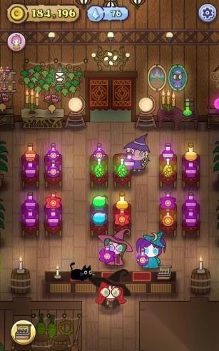 2、游戏中有各种颜色绚丽的药水,搭配上魔法元素,视觉上充满了奇幻与治愈感,让人眼前一亮。