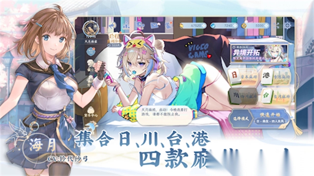 天月麻雀,是一款极具特色的二次元风格对战游戏,巧妙融合了多种麻将玩法。它集合日本、四川、台湾、香港这四地的麻将规则,无论你是渴望挑战策略性的激烈对决,还是只想享受轻松愉悦的娱乐时光,都能在其中寻得契合自己的模式。