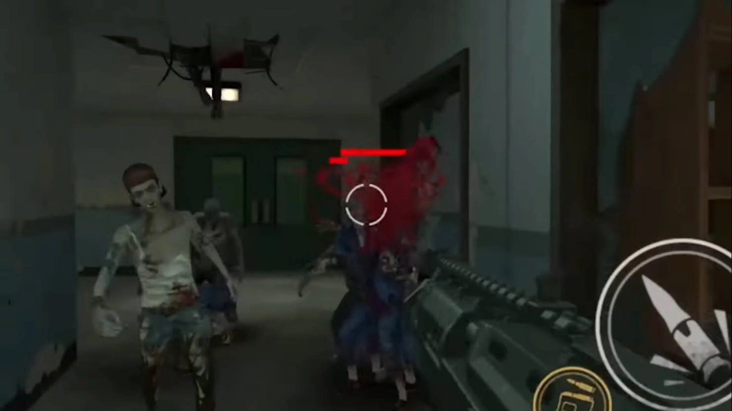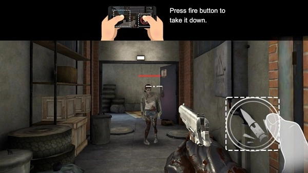 2、点击右侧的射击按钮,开始攻击,瞄准僵尸的致命部位并发射子弹。