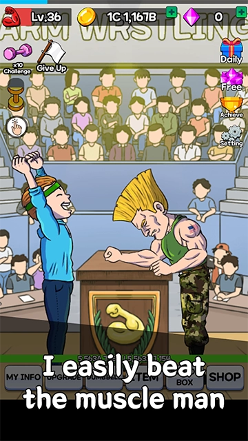 1、通过训练发展力量和耐力,在与各种对手的摔跤比赛中获胜,成为世界上最好的摔跤王!