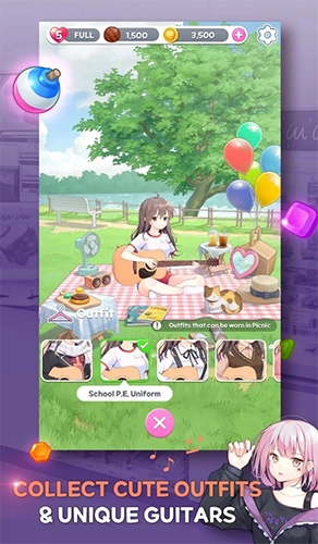 1. 美少女互动:与形形色色令人心动的吉他少女展开交流互动,通过和她们对话以及亲密接触,增进爱意,揭开故事的最终结局。