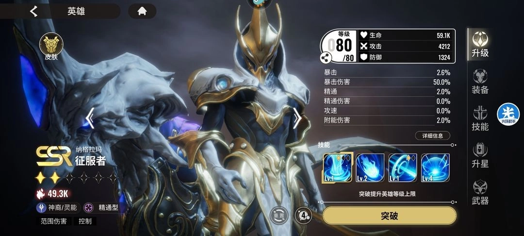 3、丰富的英雄类型,以英雄特质从高到低分为SSR、金卡SR、紫卡R、蓝卡等。这增加了游戏的挑战性。