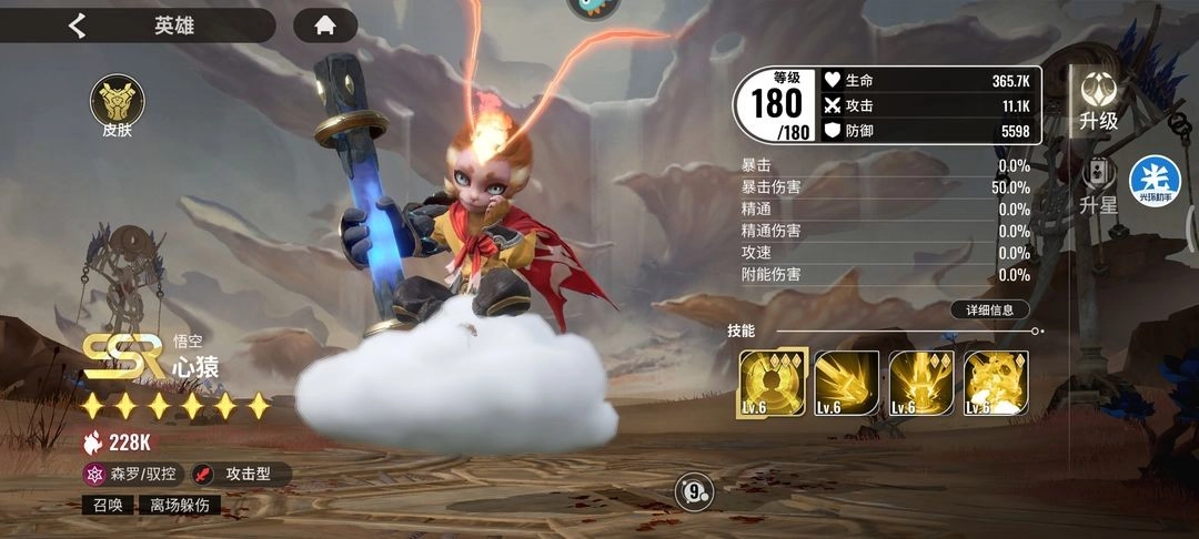 必抽理由:特殊的分身无本体清仇恨机制,让猴子可以为输出争取几秒的时间,后面各种极限挑战的关键,也是装备本必要的英雄,可做副肉,很好用