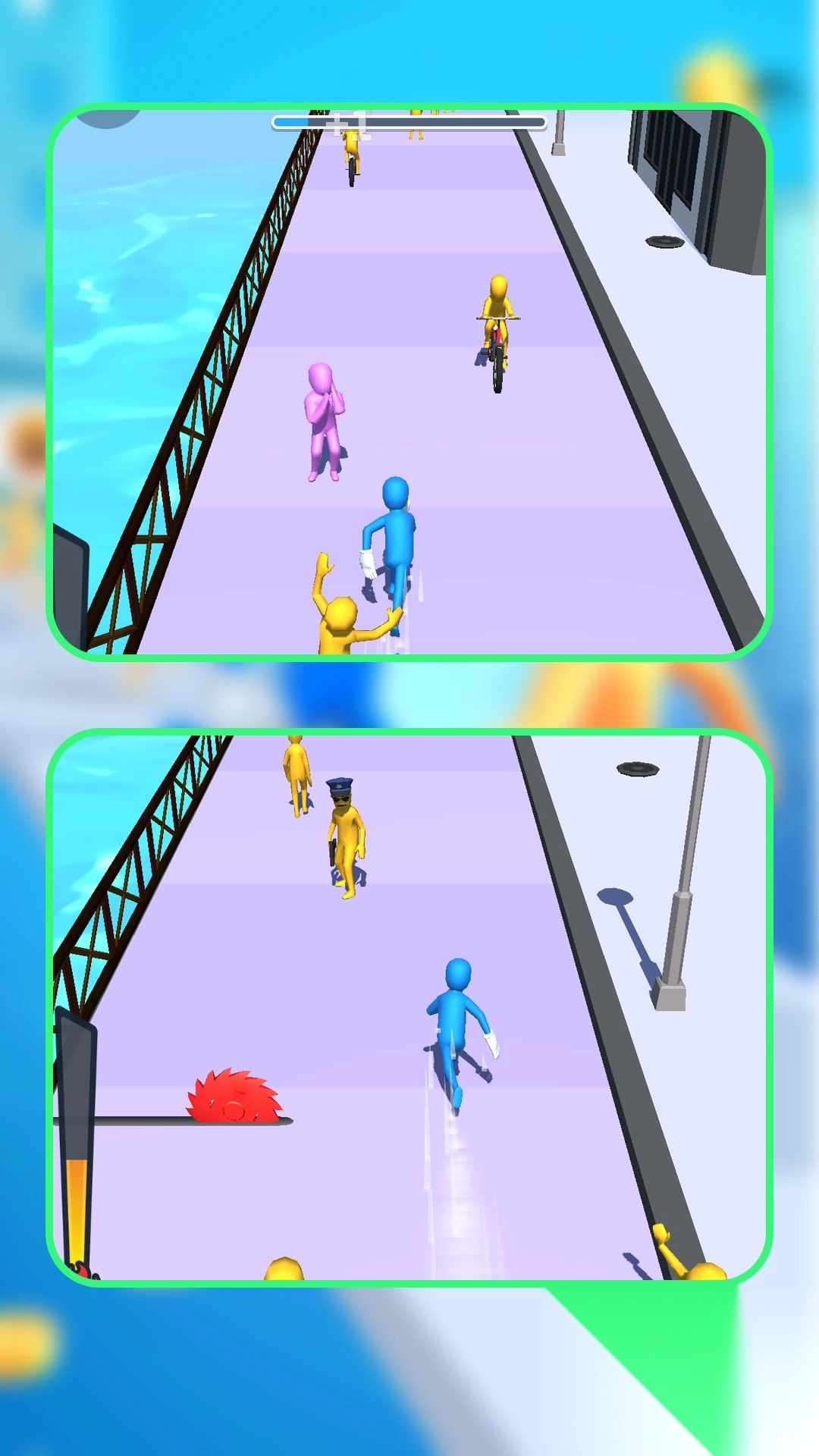 2.可以当作休闲跑酷游戏放松玩耍,各种奇葩任务和趣味关卡,将会让那你闯关后收获欢笑;