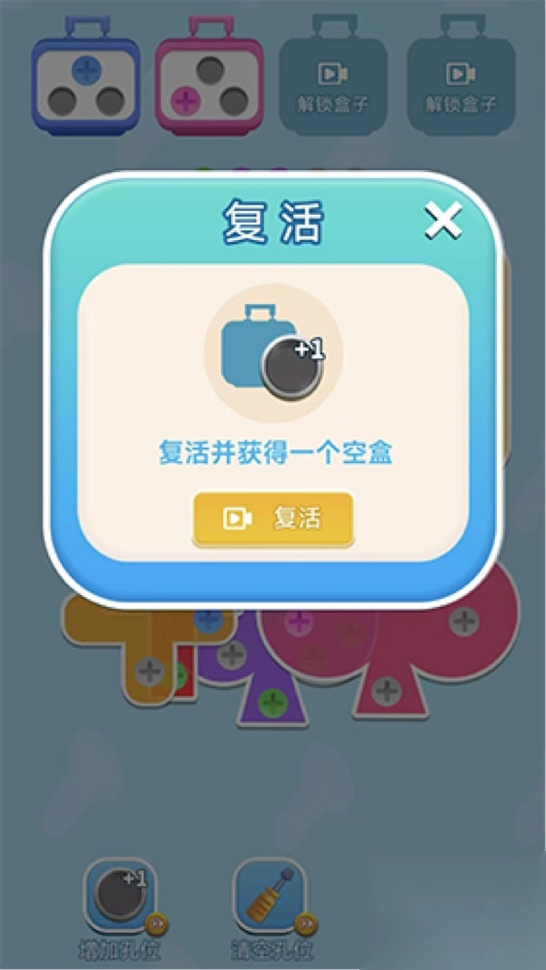 2、复活获得一个空盒奖励,给予玩家更多尝试机会,降低游戏难度。