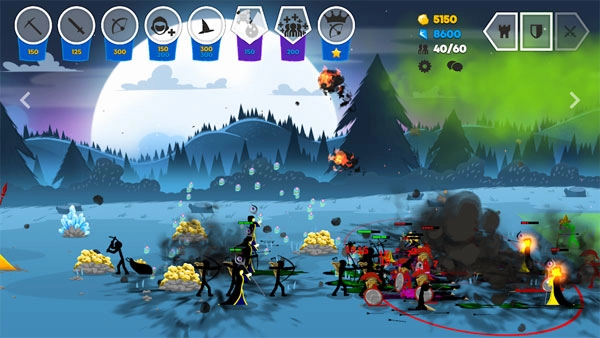 玩家可以控制每个火柴人,开采黄金,组织军队对抗现有武器,摧毁敌人营地的雕像。