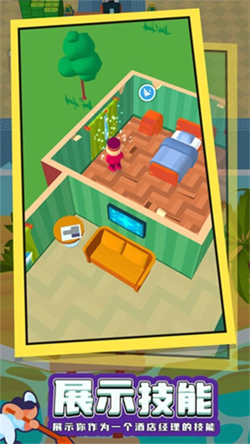 3、安排好房间给客人,他们住完后,需要及时清理打扫,才可以继续接待客人,移动小人靠近待清理的地方,就可以自动清理了。