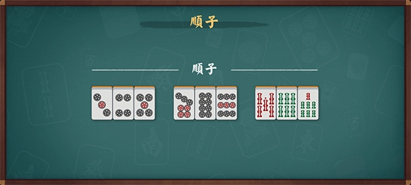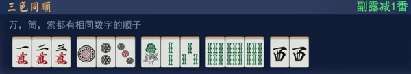 然后就是三色同顺和三色同刻,顾名思义就是三个颜色同样的顺子或者刻子。