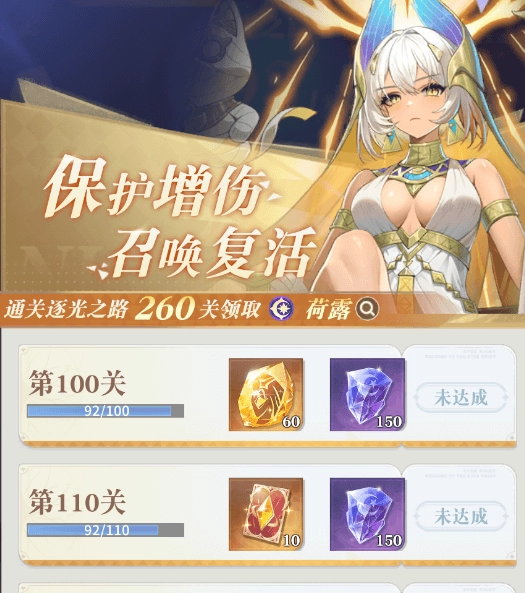 每20关会额外赠送契约卡牌和史诗魂碎片,通关260关即送强力闪耀辅助荷露