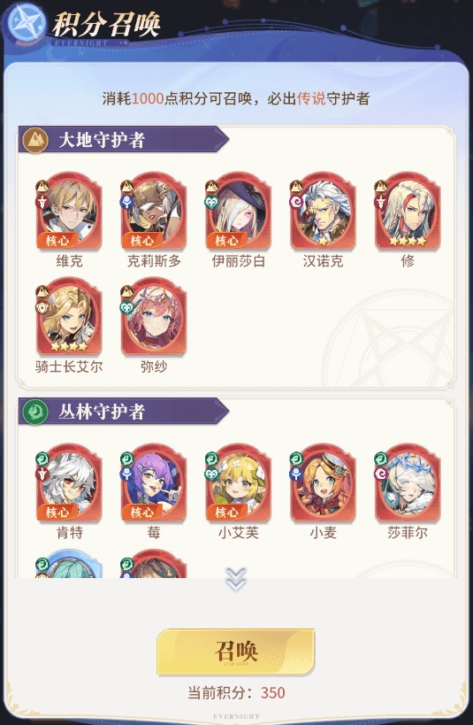 开局双月卡推荐都购买,刚好完成累充98的条件解锁积分召唤,每100抽可随机召唤一个传说守护者。