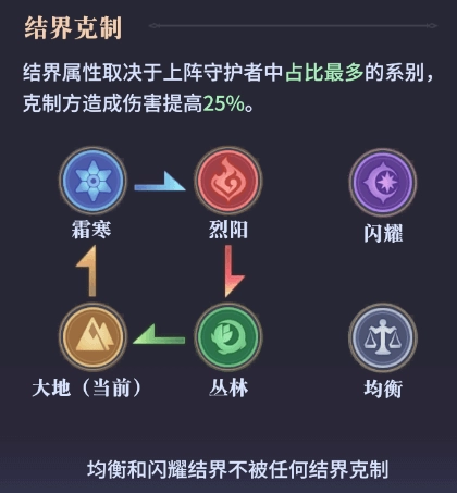 由于游戏中存在结界克制,纯系阵容有可能会被另一系克制导致战斗较为棘手,因此有时可以采用均衡阵容应对被克制的敌人,如丛林系毒队可以采用森森和莓(丛林系)、荷露(闪耀)、露和斯黛拉(霜寒)组成212均衡阵容应对烈阳灼烧队。