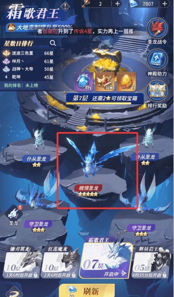 龙眠神殿是获取圣龙蛋和升级材料的重要来源,第二天到达37级便会开放,每天钥匙买完,利用刷新找到5星的统领圣龙来打,获取更高的排名和奖励