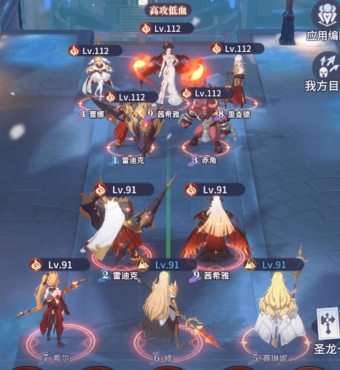核心菲尼,第二个闪耀卡妃,可选蕾娜,斯黛拉,弥沙,伊丽莎白,优兰等,阵容较为脆弱,因此要求速度够快输出够高,以直接秒杀对手快速解决战斗