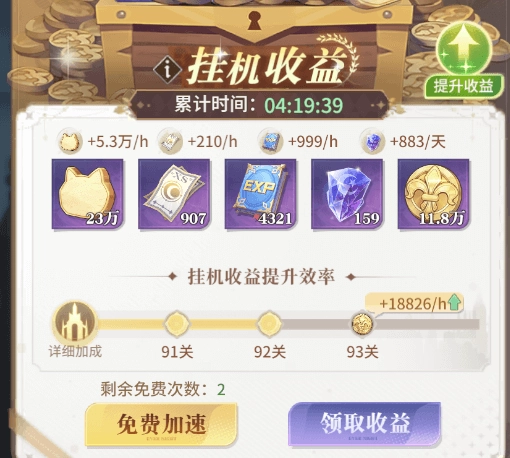 逐光之路是游戏中最重要的pve副本,关系到每天资源获取的进度,因此每天都要尽量打到打不动为止,每日挂机加速次数拉满,获取丰富面包、金币和突破石奖励