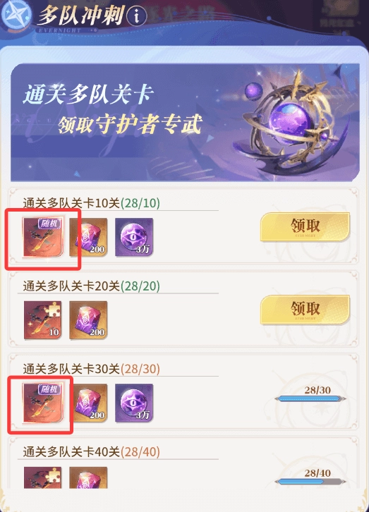 通关多队副本,可以获得丰厚的专武材料和随机专武奖励。